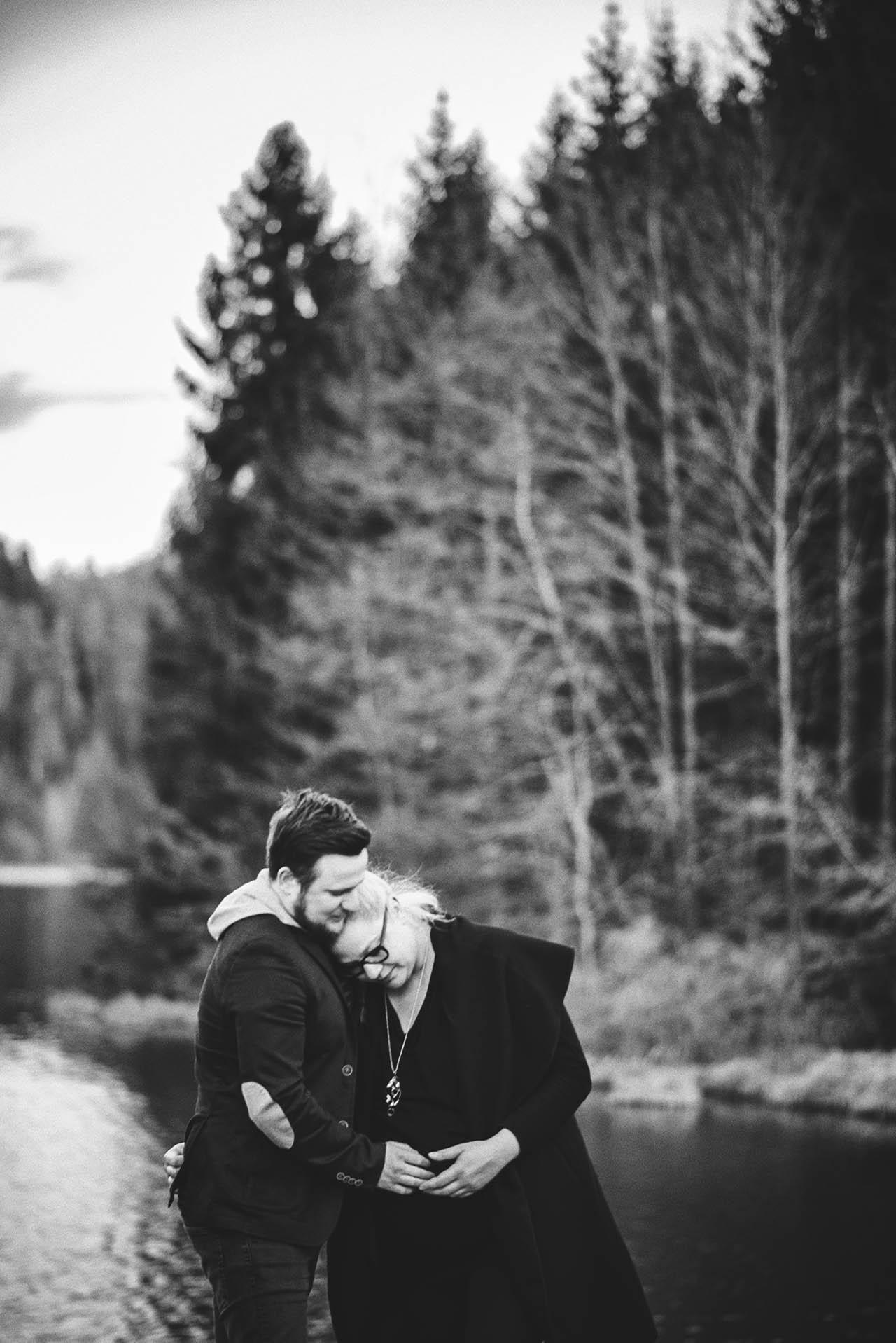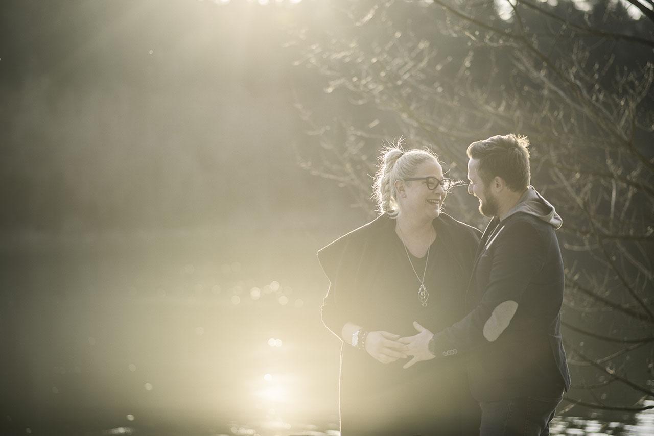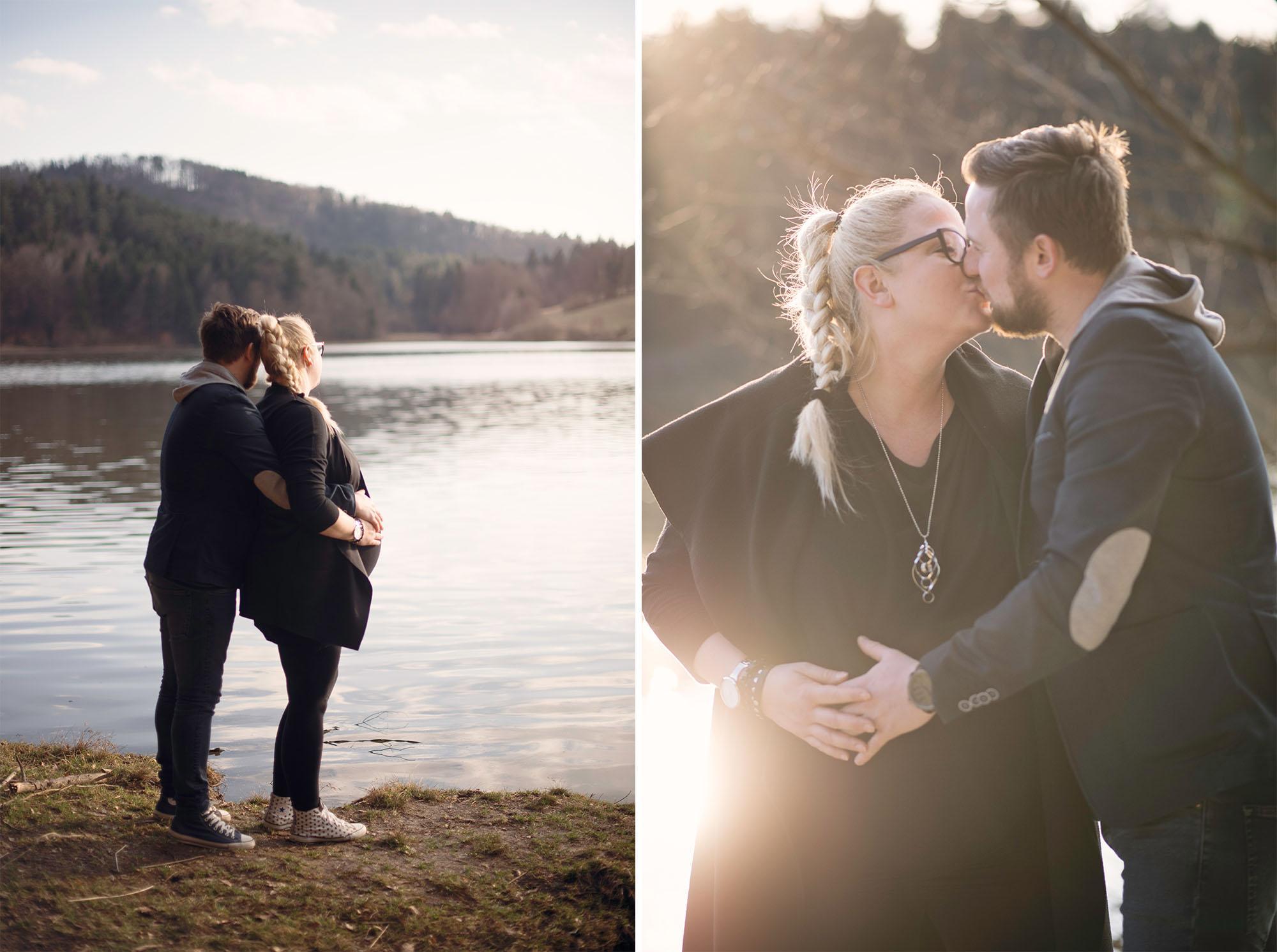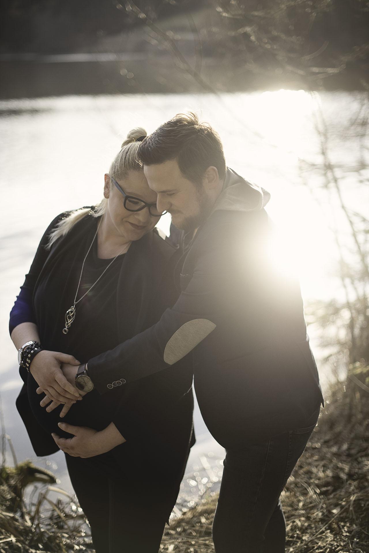 Tu pa tam se zgodi, da fotografiram simpatične nosečnice tudi le nekaj dni pred rokom. Nekatere nosečnice se za fotografiranje raje odločijo prej, nekatere pa tik pred koncem nosečnosti. Saj ne, da bi pri Tini kaj kazalo na to, da bo čez tri dni že ležala v porodnišnici in v rokah pestovala sinčka Urbana. S svojo ljubeznijo se je prav pogumno podala na sprehod okoli jezera. Sonce je sramežljivo pobožalo od zime utrujeno naravo in čisto nežno svetilo na jezero. Sprehod na svežem zraku je bil v pravi užitek, vmes smo se mimogrede ustavili za nekaj fotografij in tako je bila celotna izkušnja manj stresna za bodočo mamico in očka, ki se ne fotografirata prav rada, ampak sta si vseeno želela spomin na to čudovito obdobje veselega pričakovanja.